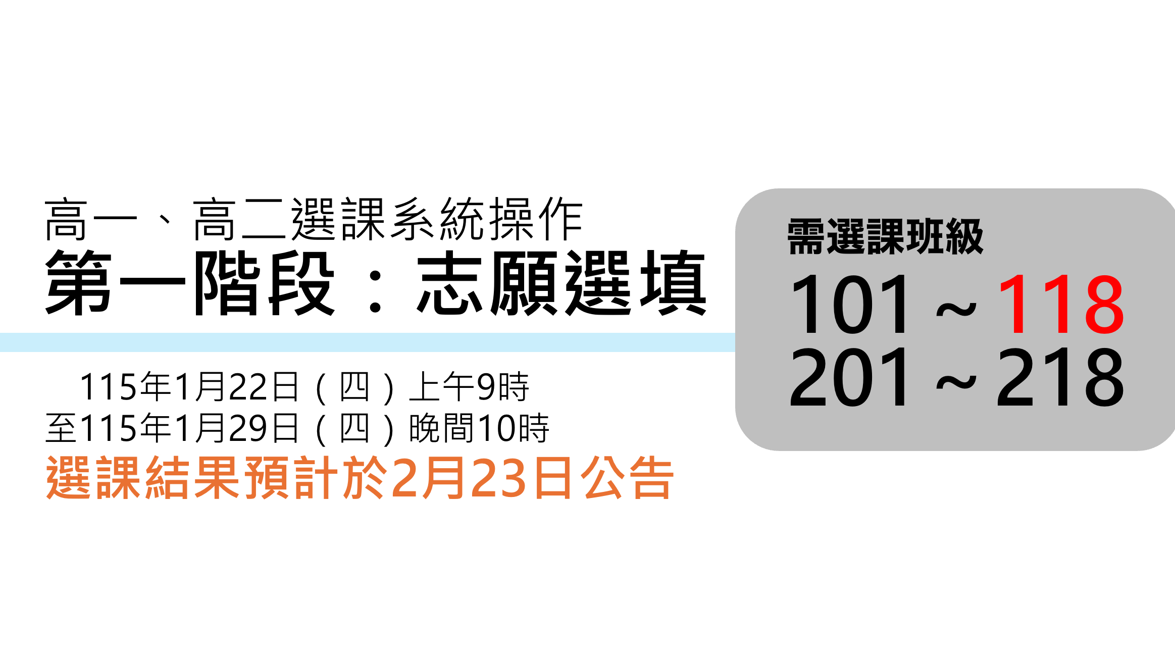 114學年度第2學期高一、二多元選修【選課公告】(第一階段志願選填:115/1/22~115/1/29】