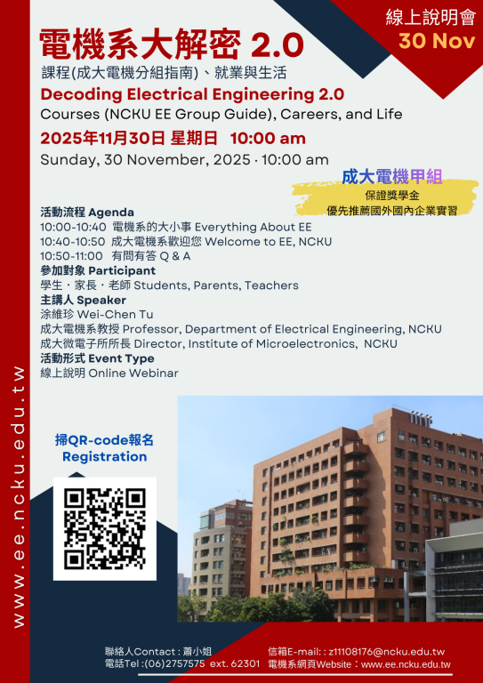 講題: 《電機系大解密2.0》電機系同學的課程(成大電機分組指南)、就業與生活