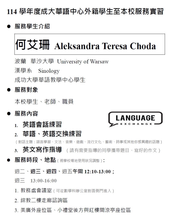 何艾珊 Aleksandra Teresa Choda 波蘭 華沙大學 University of Warsaw 漢學系
