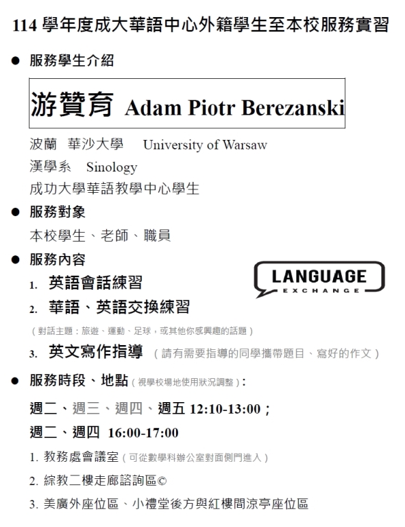 游贊育 Adam Piotr Berezanski 波蘭 華沙大學 University of Warsaw 漢學系