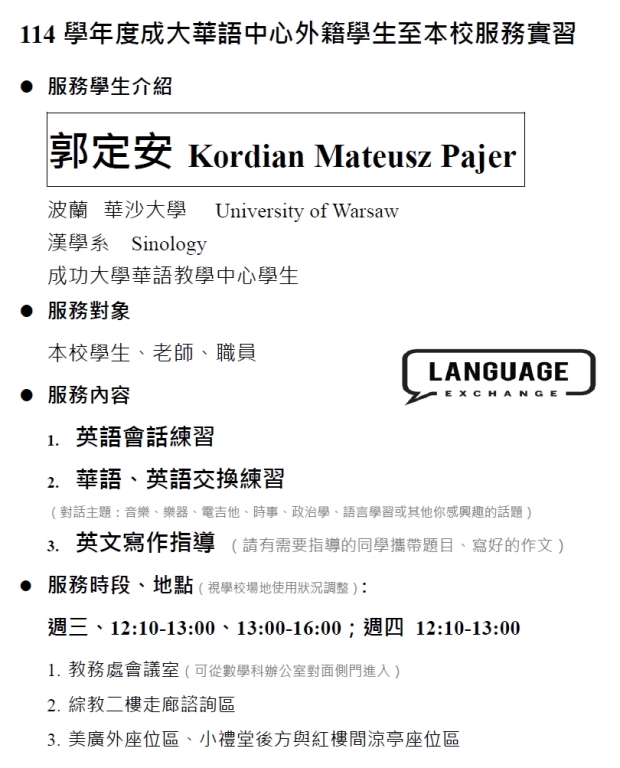 郭定安 Kordian Mateusz Pajer 波蘭 華沙大學 University of Warsaw 漢學系