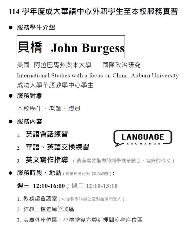貝橋 John Lucas Burgess 美國 奧本大學 Auburn University International Studies