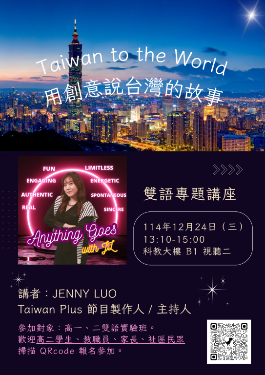 雙語專題講座《Taiwan to the World:用創意說台灣的故事》